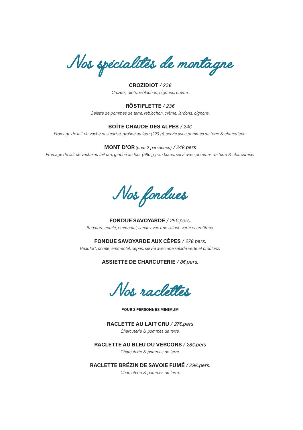 CARTE du SOIR